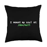 "I mount my soul at /dev/null" Linux Unix Funny Gift Throw Pillow