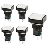 Baomain 5/8" 16mm Latching Push Button Switch Rectangular Cap LED Lamp White Light SPDT 5 Pin DC 5V Pack of 5