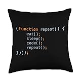 Recursion Repeat Code Funny Programming Coding IT Gift Black Throw Pillow
