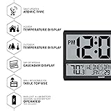 Atomic Accuracy: The Atomic clock has a built-in receiver that automatically synchronizes itself with the WWVB radio broadcast by the US Government’s National Institute (NIST) in Fort Collins, Colorado. The Atomic Clock will always be accurate to within one second as it receives daily WWVB updates. Jumbo 4” Tall LCD Time Display - Easy to Read, Easy to Use, Easy to Set up - Use as either a wall clock, or as a desk clock with integrated stand. Perfect for anyplace in your home. Displays time (hours, minutes, seconds), indoor and outdoor temperature, calendar and day of week Battery powered: Main unit 4 x AA batteries - Sensor 2 x AAA batteries (not included) Wireless Outdoor Sensor: The Wireless outdoor sensor (included) transmits the outdoor temperature to the Atomic Wall Clock. The sensor can be placed anywhere within 100ft of the receiving unit. The wireless technology means no wire installation is necessary. Note: The wireless sensor is included in the box, separate from the clock.