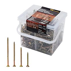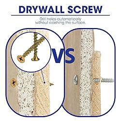 For general woodworking and other wood to wood applications. Yellow zinc is cosmetically appealing for general wood work. Coarse Threaded Phillips Drive Drywall Screws feature horizontal indentations that help to securely fasten gypsum (drywall) boards to wood studs. Conforms to ASTM C1022. Plastic box includes 4 size:8x1-1/2,8x2,8x2-1/2,8x3 Phiilips Bugle-head coarse thread gold screws.