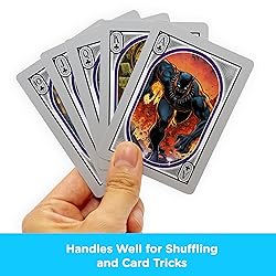 BLACK PANTHER DECK OF PLAYING CARDS: Hail T’Challa, the Black Panther! Stand with the mighty hero as he defends his kingdom with this deck of playing cards featuring 52 images of the King of Wakanda in all his glory UNIQUE DESIGN ON EVERY CARD: This Marvel Comics deck of playing cards includes 54 cards (52 playing cards and 2 jokers). Every single playing card features its own distinct Black Panther themed design and art. No two cards are alike LOOKING FOR MARVEL GIFTS? This Marvel deck of cards is the ultimate gift for Marvel fans of all ages. Perfect for game night, birthdays, stocking stuffers, white elephant, and Holiday gifts, kids and adults will absolutely love it as a gift 100% OFFICIALLY LICENSED MARVEL MERCHANDISE: This deck of officially licensed Marvel playing cards is designed by AQUARIUS. They're the perfect piece of Marvel memorabilia to add to your collection THE AQUARIUS PROMISE: It's simple. We stand behind our products 100%! Click the yellow "Add to Cart" button today and buy with confidence
