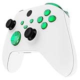 Only compatible with Xbox Series X & Xbox Series S Controller; Not compatible with other Xbox One Controllers. Check the second picture of the listing before purchase Custom designed replacement buttons to perfectly fit for Xbox Series X/S controller. Precision cut to work exactly like the original buttons Required customers to take apart the controller to install these full set buttons; Required customers handy with controller installation; Get installation video guide on Youtube by searching “eXtremeRate Buttons for Xbox Series X/S”or "kjIIxrSEzlc" The chrome green color looks amazing; Would be awesome if you combine it with our controller housing shell Package Includes: 1* RT/LT/RB/LB buttons; 1* ABXY Action buttons; 1* Start/Back/Sync buttons; 1*Middle bar; 1* Dedicated share button; 1* Open shell tool; 2* Screwdriver; 17* Spare screws. (Important: The controller, shell and other parts are not included.)