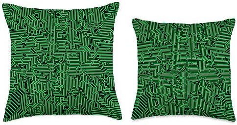 Computer Circuit Board Geek Tech Gamer Data IT Pattern Green Throw Pillow