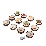 - Children 3 and up will engage their senses and strengthen their memory while playing this elevated, nature-inspired version of a classic matching game. Pieces representing flowers, spider webs, ladybugs, turtle shells, eggs, pine cones and other naturally occurring materials that children already relate to the outdoors, allow for easy recognition and recall during play. Over-sized, wood cookie bases will naturally wear over time, revealing cause and effect behaviors and natural evolution to children. Set includes 24 pieces and canvas bag to use during playtime and after as storage.