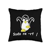 Tux Linux Penguin Sudo Rm Rf | Programmer Developer Hacker Throw Pillow