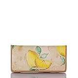 Featured in Desert Amalfi, a playful embossed lemon print accented with tan leather trim. Genuine leather.
