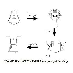RTNLIT 110-240V Infrared Motion Sensor Switch, Recessed PIR Ceiling Motion Sensor Detector Light Switch Adjustable 360 Degree