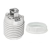 E26 Socket,Ceramic Medium Base Screw Socket E26 E27 Threaded Glazed Porcelain Lampholder (with Aluminum Shade Ring)