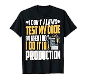 I Don't Test My Code Programmer Programming Coding Geek Novelty items makes a great gift for any ocassion! Great as a Christmas, Valentine's Day, Birthday or any other holiday or occasion you can think of! These items make people laugh! Programmer Novelty Geek Coding Things Inc. items make a great gift for any member of your family! Lightweight, Classic fit, Double-needle sleeve and bottom hem