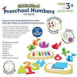 - Play your way to preschool-ready early math skills! Set your kids on the path to school success with the fun, quick preschool activities found in the Skill Builders! Preschool Numbers activity set from Learning Resources. This 52-piece set comes with all of the hands-on preschool activities needed to help kids learn and retain early number skills; build hands-on number recognition with 10 included animal counters, visualize shapes for lessons in early geometry, boost number recognition through tracing activities, and more! Designed with all kinds of early math skills in mind, Skill Builders! Kindergarten Math is a versatile way to learn; whether you're looking for homeschool supplies or teacher supplies for classroom instruction, this set has the fun, active play you need! Skill Builders! Preschool Numbers also comes with a built-in carrying case, so you can build your early number skills with on-the-go preschool activities! Its a preschool classroom Must-Have!