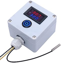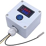 Twidec/DC 12V Temperature Controller Box Programmable -50 to 110 ℃ (-58 to 230 °F) Red/Blue LED Display Monitor Heating/Cooling Thermostat Control Module with NTC 10K Waterproof Sensor and Switch
