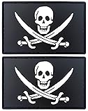 JBCD Pirate Jack Rackham Flag Patch Tactical Pirate Patch - PVC Rubber Hook and Loop Fastener Patch, 2 Pack