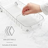 ORGANIZING YOUR WAY: Two removable, adjustable dividers let you create the perfect-sized compartments for all your fridge staples. ROLLS IN AND OUT: Smooth-spinning wheels allow you to easily roll the caddy out to see all your organized items at a glance. EASY TO CARRY: Sturdy handles help you carry the drawer to a counter or table, making food prep and reloading a snap. QUICK SET-UP: No assembly or installation helps you organize the fridge in less than a minute. Just pop dividers into place and you’ll be rolling along.