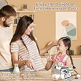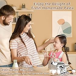 [Homemade Yet Professional Pasta Maker] Our hand-crank pasta machine is crafted from high-quality, heavy-duty stainless steel and food-grade materials, ensuring durability and safety. Designed for homemade perfection, it allows you to create fresh, healthy, and delicious pasta effortlessly. Treat your family to an authentic spaghetti dinner made entirely by you—because nothing beats the taste of fresh, homemade pasta [Adjustable Dough Roller for Perfect Pasta] The thickness of your dough directly impacts the texture and taste of your pasta—that’s why our dough roller features 7 adjustable thickness settings. Simply turn the dial to achieve the ideal thickness for spaghetti, fettuccine, lasagna, and more. Customize your pasta just the way you like it [Detachable Double Cutter Head - Versatile Pasta Making] This manual pasta machine features two interchangeable cutter heads—one for wide fettuccine(4.5mm) and the other for classic spaghetti(2mm) - giving you the flexibility to create pasta in two different widths. Easily roll and cut dough to prepare authentic Italian pasta right at home. Indulge in fresh, homemade pasta crafted to your preferences [Easy to Use, Clean & Store] Making homemade pasta should be fun, not complicated—and with our pasta maker, it’s a breeze! This machine is designed for easy assembly, operation, and cleaning. Simply use the included brush or a dry cloth to wipe clean. Plus, its compact size makes it easy to store anywhere at home. No fuss, just fresh pasta [Good to Know] This 2-in-1 manual pasta maker is not only a money-saver but also a fun activity for the whole family! Featuring an adjustable roller with 7 thickness levels, a double cutter head attachment for two pasta widths, and easy assembly, use, and cleaning, this hand-crank machine is the perfect choice for fresh, homemade pasta. If you love pasta and want to enjoy delicious, restaurant-quality meals at home, skip the store-bought options - this is the one