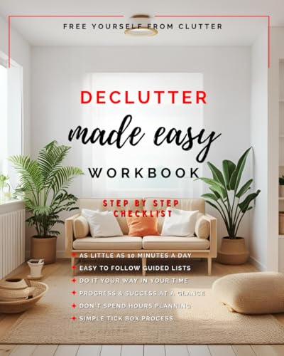 - Declutter Made Easy Decluttering our home can be difficult for several reasons. These reasons can include; you don’t have the time, the feeling of being overwhelmed at the task, fear of not knowing what to keep and what to remove from your life. And the most important is; where do I start and is there an easier way? This book contains important weekly checklists, weekly planner, 4 weekly check-in progress pages and inspirational quotes to help you get through this process in an easy, managed manner, where you can decide for yourself how long you spend each day decluttering your home. You can take your time, slow or fast, but with these worksheets you will see a big difference in the process with minimal effort and no more long hours planning.As little as 10 minutes a dayEasy to follow guided listsDo it your way in your timeProgress and success at a glanceDon't spend hours planningSimple tick box process All you will ever need to declutter is right here in this book. Free Yourself from Clutter the Easy Way