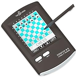 - Why Touch 8 Chess & Games Handheld ComputerThe best-in-class electronic chess computers to satisfy the needs of all from neophyte to master.Chess Program Features:30 main levels (6 Timed Move, 4 Timed Game, 15 Analysis, 5 Fun). 5 "mini-chess" modes to help beginners learn how to play in stagesObserves all rules including castling/en passant / pawn promotion. Help function can indicate legal moves in a position for beginnersOptional teaching features can warn of mistakes and provide advice. The computer can be made to play against itself if desired220 built-in classic games played by human and computer champions Bobby Fischer, Anatoly Karpov, Garry Kasparov, Vladimir Kramnik, and Deep Blue / Deep ThoughtLarge built-in openings library of approximately 7000 half moves. Computer evaluation of a position can be displayed on requestComputer thinking can be interrupted to make the best move found. Recognises draws by 3-fold repetition / 50-move rule / stalemateSolves mate-in-2 and mate-in-3 problems. 10 built-in mate-in-2 problems for practice. Take back or replay up to 8 moves for each sideChange sides and/or reverse board at any time. Referee mode allows playing both sides or playing against a friend. Positions can be set up for computers to analyze.Strategy Games:Plays 8 other classic strategy games (Chess, Checkers, Draughts, Reversi, Four-in-a-Row, Fox and Geese, Grasshopper / Halma, Nim, Northcote's game) with 16 skill levels for Checkers / Draughts and 10 skill levels for other games.Electronic Chess Computers & BoardsGeneral Features:Electronic chess computers march ever onwards offering young and old alike a visual, tactile, and cognitive pleasure that only devices dedicated from inception to the royal game ca