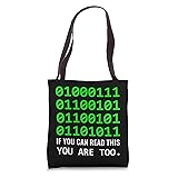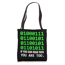 GEEK written in Binary Code is perfect for geeks who are Network Engineer, System Administrator, Developer or Programmer. Funny computer programming geek gift for computer programmers or teachers in information technology on Sysadmin Day. There are 10 types of people who will understand this computer joke. 16” x 16” bag with two 14” long and 1” wide black cotton webbing strap handles. Made of a lightweight, spun polyester canvas-like fabric. All seams and stress points are double-stitched for durability, and the reinforced bottom flattens to fit more items and hold larger objects. Spot clean/dry clean only.