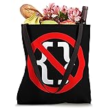 Python is known for its uncluttered syntax. In contrast to many other programming languages, curly brackets are not used to delimit compound statements. Just try to import braces from the future module in a REPL and see what happens. A design for Python programmers who embrace significant whitespace and say no to braces. It shows a pair of curly brackets in a red no sign. Great for work, tech conferences and other geek events. 16” x 16” bag with two 14” long and 1” wide black cotton webbing strap handles. Made of a lightweight, spun polyester canvas-like fabric. All seams and stress points are double-stitched for durability, and the reinforced bottom flattens to fit more items and hold larger objects. Spot clean/dry clean only.