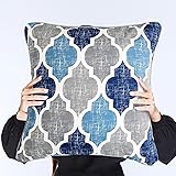 Beauoop Throw Pillowcover Soft Chenille Print Moroccan Geometric 2-Sided Pattern Blue and Gray Decorative Velvet Square Cushion Covers Standard Pillowcase Couch Sofa Bed Men/Women 18x18 Inch, Set of 2