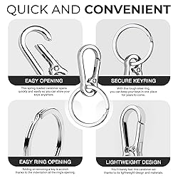 Built for Adventure: When you're holding something as important as your keys, you need a key chain clip that lasts. This keychain carabiner has a nickel-plated ring and clip that prevent oxidation, so you won't have to worry about rust or corrosion. Clip It Anywhere: Although this carabiner key ring is small and light, its tough construction means that it can be used anywhere. From clipping keys, to phones, to remote door openers, you can keep your most important items attached securely at all times. EACH PACK INCLUDES 4 RINGS and 4 CLIPS. Easy to Use: From the easy-open carabiner to the indented key ring, this carabiner for keys is a cinch to use. Whether you're adding a new key or moving your carabiner from a belt loop to a backpack, this is a car keychain you'll really latch onto! Holds All Your Keys: Unlike smaller competitors, this clip keychain has a 1.25 inch ring that can accommodate all your keys without issue. Now you can keep everything on one ring that easily clips and unclips to stay with you wherever you go! Understated Style: Keep it simple with a nice, minimalist keychain. The polished zinc finish on this keychain holder blends in well with any outfit or setting for a clean look. Not only does this keychain make your life easier, it looks good doing it.