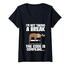 Womens The Code Is Compiling Coder Sloth Coding Funny Programmer V-Neck T-Shirt