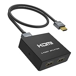 4K HDMI Splitter 1 in 2 out, mirror or duplicate one HDMI AV input source to two HDMI monitors simultaneously at 4k x2K@30hz. NOTE: Only mirror or duplicate to 2 screens, can not extend or create different monitors. 【HDMI 2.0 Cable】To save your cost, this hdmi splitter for dual monitor includes 1 pack HDMI 2.0 cable 4K@60Hz. Seller Recommendation: Using HDMI 2.0 cable to make stable and clear video quality. 【Cascade Connection】1x2 HDMI Splitter support Cascade up to 8 displays, hdmi AV amplified and support cable length up to 50ft long @4k quality. 4K HDMI Splitter 1 to 2 support resolution up to 4K 3840x2160@30Hz, 36bit color bit, HDCP 1.4, 3D,DTS-HD, Dolby-ture HD, LPCM7.1, DTS, Dolby-AC3, DSD, downscale to 1080P@60hz 720P@60Hz. Ideal for PS3 PS4 Xbox DVD player computers Firestick and Roku... Package contain: 1x HDMI splitter, 1x HDMI 2.0 cable, 1x user manual, 1x US Power Adapter. Any questions, get support from Yinker Official.
