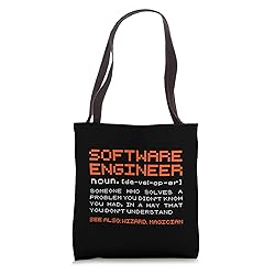 Software-Engineer Developer Definition Programming. You are a Software-Engineer or Programmer and Coder, this funny Design is for computer programming and developer who geek about Syntax, Coding and source-code. Programmer Software-Engineer and Coder. This funny coder programmer definition is designed for testing, debugging, fixing errors and bugs, a nerd about programming languages or applications, and the right code execution of programming. 16” x 16” bag with two 14” long and 1” wide black cotton webbing strap handles. Made of a lightweight, spun polyester canvas-like fabric. All seams and stress points are double-stitched for durability, and the reinforced bottom flattens to fit more items and hold larger objects. Spot clean/dry clean only.