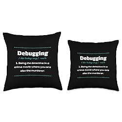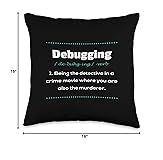 100% Polyester Debugging Being The Detective In A Crime Movie Where You Are Also The Murderer - perfect information technology artwork for any nerd who loves software. This coding design is ideal for every geek who thinks about syntax. 100% spun-polyester fabric Double-sided print Filled with 100% polyester and sewn closed Individually cut and sewn by hand Spot clean/dry clean only