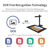 Compatible systems: Compatible with Windows XP/7/8/10/11 and macOS 10.13 or later Upgraded Features: 24MP High-Quality Auto-Focus Camera, Resolution upgraded to 5696*4272, DPI 440(A4 8.268 x 11.693)/ 320(A3 11.693 x 16.535). Notice: glossy materials(glossy photo,glossy magzine)are NOT recommended Versatile Scanner: Shine Ultra Pro can flatten the 3D curved surface after pixel transformation to complete flattening of the book page. Digitize documents to JPG; PDF; Searchable PDF; WORD; EXCEL. Note: CZUR Ultra Pro can scan books while CZUR ET is recommended if professional level is needed Design and Portability: Shine Ultra Pro is designed for portability with 90° foldable and height adjustable, and weighs only 2 lbs Compatibility: Working with Zoom; Skype; Google meet perfect device for remote learning and web conference