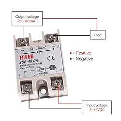 - SSR-40DA solid state relay is ideal for automatic process control application, a must component for temperature controller and other machinery control system. High reliability, high efficiency and long lifespan, a great part for temperature controller and other machinery control system. Specification: Model: SSR-40 DA Solid State Relay Module Input Voltage:3-32V DC Output Voltage:24-380V AC Output Current:60A Control Method: DC to AC Mounting Method: Bolts fixed On Voltage:<1V One-off time:<10ms Off Leakage current:<2mA Relay Size:62x 45 x 24mm / 2.48 x 1.73 x 0.94" (L*W*H) Package included: 3 * SSR-40DA 40A 250V Solid State Relay
