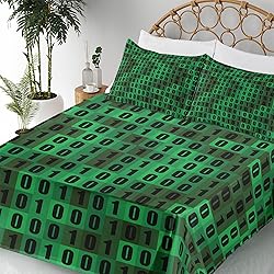Ambesonne Programmer Sheet Set, Computer Data Bits Process Themed Greenish Binary Programming Code Printing, Fitted and Flat Sheet with Pillowcases Bedding Accent 4 Piece Set, Full, Green Emerald