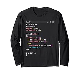Funny shirt are staple among developer, game shirt is one of those too, there are java and web shirt, this is shell scripting, in funny eat, code, loop. Bash Script Style Console Screen. Funny Computer Science Software Developer Life Bash Script. Bash Script Style Console Screen. Funny Computer Science Software Developer Life Bash Script Eat Code Sleep Repeat While Alive Shirt. Lightweight, Classic fit, Double-needle sleeve and bottom hem