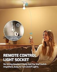 [Replace Pull Chain Switch] Get rid of pull string switch that kept breaking or getting stuck, just mount the remote light switch beside the door or bedside, easy to turn on/off the light without fumbling around for the switch in the dark, perfect for the elderly, children and people with limited mobility [Easy to Install] Easily mount the detachable switch anywhere you want, screw in the light socket, convenient to control your pull chain lights, ceiling lights and floor lamps remotely with the switch or manually. Shorter Version 1.97'' is more convenient to install and will not affect the overall shape of your lamps [Easily Own a Wall Switch] Add an additional switch, replace an old broken switch or relocate a hard-to-reach one buried behind furniture, ideal for your closet, basement, attic, pantry and laundry room. No wiring required, avoiding electrician costs or busting up walls for complicated wiring [Programmable & Expandable] The wireless light switch and receiver kit of the same model can be programmed freely, available to activate multiple devices with 1 switch or control 1 device with multiple switches, control all your lights anytime, anywhere; compact size won't affect the lighting design, more durable than remote control bulbs [100 FT Longer Remote Range] Strong RF signal covers up to 100 FT in open areas, you can control garage, porch, stair and basement lights from bed or couch, free from stumbling through a dark room; this wireless remote light switch can work through walls/doors without any interference from other appliances