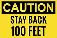 - Alert people to be safe around your vehicle with our Caution Stay Back 100 Feet bumper sticker! Can also be used as a sign for any industrial equipment or area. Uses bright yellow coloring to be easily seen on the road. Proudly manufactured in the USA using high quality materials. These stickers are each 9.25"W x 6.25"H.