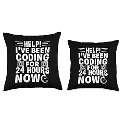 Help! I've Been Coding For 24 Hours Now. A clock, codes and white font color. Programming design perfect for computer scientists. Designed perfect for It Specialist who loves to check, operate and run a program. Perfect for systems programmer who's life is dedicated into programming. 100% spun-polyester fabric Double-sided print Filled with 100% polyester and sewn closed Individually cut and sewn by hand Spot clean/dry clean only