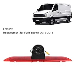 - Specification: Item Type: Brake Light Backup Camera Material: ABS Image Sensor: PC7070K upgraded version (note that it is HD 7070K, not SD 1030 and 7959 solutions) Pixel: 720x540 Image Format: NTSC, PAL Diagonal Viewing Angle: 170 Degrees Rated Voltage: DC12V Grade: IP67 Fitment: Replacement for Transit 2014-2018 Package List: 1 x Brake Light Backup Camera 1 x Sticker 1 x Manual 1 x Connection Cable 1 x Video Cable