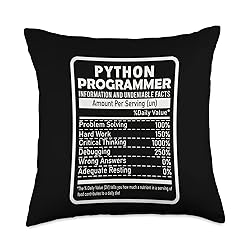 Funny Python Programmer Nutritional Facts Python Programming Throw Pillow