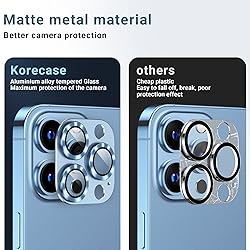 - About Korecase: Korecase is committed to providing Amazon customers with quality services and quality products at reasonable prices. All the products we sell are carefully designed and produced, and are your best choice. Compatible models: only for iPhone 13 Pro 6.1" & iPhone 13 Pro Max 6.7" ( Not for iPhone 13 / 13 Mini / 12 / 12 Pro /12 Pro Max ) This high-quality metal rear camera lens protective film specially designed for Apple iPhone13 Pro and iPhone 13 Pro Max has the following attractive features: ➊Korecase is made of lightweight aluminum alloy tempered glass. The thin and light material has a thickness of only 0.2mm, which can protect the phone without affecting its appearance. ➋Easy to install. After using dry wipes to remove dust, just cover the camera protective film on the lens and gently press to make it stick firmly. The lens film uses imported 0.18mm3M glue, which has strong adhesion and is not easy to fall off, so you can use it with peace of mind. ➌The hole position of the lens protection film is precisely matched, which perfectly fits the camera, allowing the lens film to protect the entire lens. ➍Korecase has been upgraded with five layers of reinforcement, which has stronger scratch resistance and impact resistance. ➎Many customers worry that installing the lens film will affect the photo quality, which is unnecessary. Optical grade glass, 99% light transmittance, more high-definition pictures, no exposure and no blur. ➏Color matching is a plus point, it almost blends with your phone and adds a touch of style around the lens. Tips: If you have any questions about the product or shipping, please contact us and we will do our best to solve your problem. Your satisfaction is our greatest motivation.
