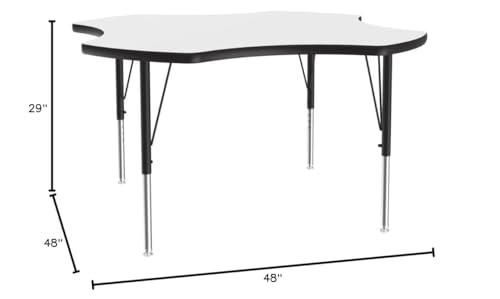 Correll 48" Clover Shaped Classroom Activity Table, Height Adjustable (19"-29") White Durable High Pressure Laminate, School Furniture, Made in The USA
