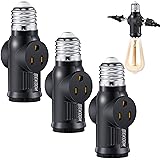 Feekoon 3 Pcs Light Socket to Plug Adapter, E26 Lamp Sockets Converter to 3-Prong Outlet & Bulb Holder, Screw-in Light Socket Adapter for Garage, Porch & Utility Areas (Black)