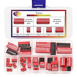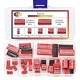 Taiss 35PCS Double Row Dip Switch Assorted Kit 1 2 3 4 6 8 10 Position 2.54mm PCB Mountable On Off DIP Switches Slide Type Red Toggle Switch for Circuit,Breadboards F-055-35PCS