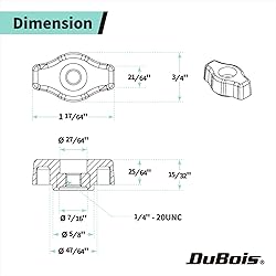 - Introducing the T Style Thru Hole Knobs by DUBOIS.These t shape nuts are designed to provide you with a multi-functional toolless fastener knob that gives you optimal control with a secure, tight grip for your applications. The user friendly build allows you to utilize a secure hand-grip while maximizing your adjustment and tightening control. It allows you to streamline your workflow and enhance your project results with a simple twist and turn.Premium Construction and DesignThe black knob is made with high quality, durable polymer plastic and flaunts an ergonomic design that is comfortable to secure and twist with the hand. The threaded 1/4-inch-20 knob thru hole features a plated steel construction that wont crack or strip due to over-tightening.Commonly Used Applications:T-track assembliesHand toolsFeather boardsTable saw fencesDrill pressesWoodworking jigs and fixturesand many more!