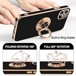 Hython for iPhone 11 Case with Ring Stand [360°Rotatable Ring Holder Magnetic Kickstand] [Shiny Plated Rose Gold Edge] Slim Soft TPU Cover Luxury Protective Phone Case for Women Men, Black