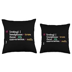 Coding Headphones Software Developer Code Funny Programmer Throw Pillow