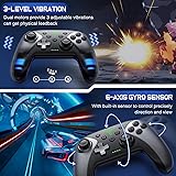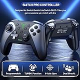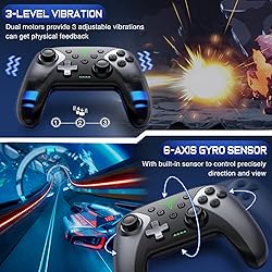 【PROGRAMMABLE FUNCTION for SWITCH CONTROLLER】: The switch controller with 2 back programming buttons, there are two modes, which are single programming or multi-programming. M1/M2= A+B+Y+L+ZL+R+ZR+D-pad, then you can use other fingers to operate more comfortably and centered. Switch controllers with the programmable buttons helping to minimize button abuse and stick clicking it can last more than several years with heavy use 【ONE-BUTTON WAKE-UP SWITCH CONSOLE】 The switch wireless controller is used for the first time, you need to press the "Y + HOME" button to connect. Then next time just simply presses the "HOME" button of the pro switch controller to wake up your device. It's very convenient for you to start the game(NOTE: DOES NOT SUPPORT WAKE-UP SWITCH 2 AND AUDIO FUNCTIONS) 【VIBRATE FUNCTION & GYRO SENSOR】 The controller for switch have dual vibration motors with 3-level precise vibration: weak, medium and strong that provide you excellent vibration feedback to enhance the game immersion. With the 6-axis gyro sensor, this controller can detect the inclination of the controller and make a quick response, give you more fun while playing motion sensing games 【ERGONOMIC DESIGN & TURBO FUNCTION】 The pro controller switch remote's ergonomic and non-slip design that allows you to control the game stably and don’t have to worry about the sweat in your hands. The wireless switch controller can be set to auto TURBO or manual TURBO mode. There are 3 adjustable speed: 5shots/s, 12 shots/s or 20 shots/s. You also can customize the TURBO button, A/B/X/Y/L/ZL/R/ZR all buttons can be set to TURBO, which make it easier to win an arcade or action game 【SCREENSHOT & HIGH-PERFORMANCE BATTERY】 The switch pro controller wireless’s continuous screenshoting function help you more enjoyable to play games. The switch pro controller for controllers with 600 MAH large capacity rechargeable battery, but it just need 2-3 hours to charge fully. Switch controllers pro can run for 10-15 hours, make sure you can enjoy games longer without interruption. (Warm Tips: Left Stick has been upgraded, please purchase with confidence)