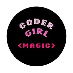 Cute 'Coder Girl Magic' design. Programming lover, grab this pink text-based artwork suitable for women, youth, and teens. Cute idea from men, boys, dad, and husband to their mom, wife, or girlfriend who are programmers, coders, or web developers This elegant geek design is great for computing programmer, computer science, geeks, coders and software developers. They are born to code from HTM, JavaScript, PHP, C, C#, C++ or Python. Cool present for her on graduations, Christmas and other holidays PopGrip with swappable top; switch out your PopTop for another design or remove it completely for wireless charging capabilities. (Not compatible with Apple MagSafe wireless charger or MagSafe wallet.) Expandable stand to watch videos, take group photos, FaceTime, and Skype handsfree. Advanced adhesive allows you to remove and reposition on most devices and cases. Note: Will not stick to some silicone, waterproof, or highly textured cases. Works best with smooth, hard plastic cases. Will adhere to iPhone 11, but not to the iPhone 11 Pro nor the iPhone 11 ProMax without a suitable case.