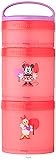 Stackable, interlocking containers for snacking on the go, featuring officially-licensed Disney graphics Includes three containers, measuring 1/3 cup, 1 cup, and 1 cup Perfect portions for fruits, veggies, crackers and other healthy snacks or lunches Twist 'n' Lock system connects jars with ease. Removable handle makes snack pack easy to carry or clip to a bag BPA and phthalate-free; dishwasher and freezer safe; manufacturer’s limited lifetime warranty