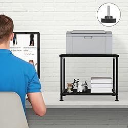 - Rolling Printer Cart, Industrial Style Struggling with a messy desk? Come and check out our printer storage shelf for home. 1.Free up your desktop With this wheeled printer stand, place it under your desk to free up a spacious office desktop. 2. Modern black shelf Stylish and elegant black storage cart, used to place the printer rack is also full of beauty. Easily move to any location. Equipped with four metal casters, you do not need to lift the printer table with storage shelves to easily move to other locations, no effort required! Two lockable casters prevent the printer stand wooden from sliding freely. Foot pads with adjustable height. No need to worry about uneven floors, the industrial printer rolling cart comes with adjustable height pads that provide stable storage and protect the floor and desktop from scratches.