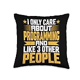 Programming Gifts Shirt for Programmer Co. I Only Care About Programming Coder and Like Other 3 People Throw Pillow, 16x16, Multicolor